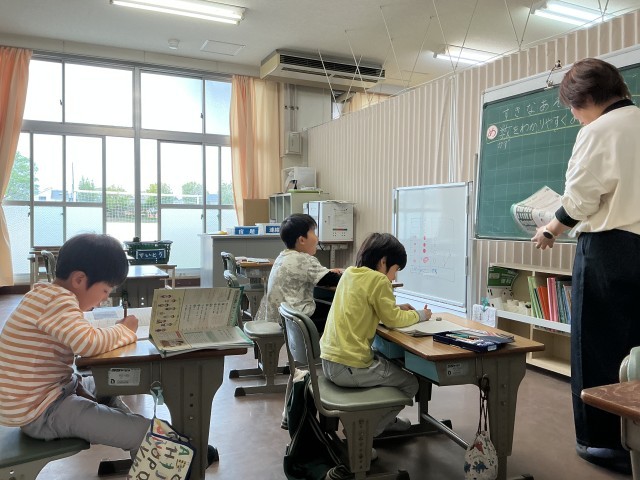 少し難しい漢字を見つけた子が、「チャレンジするぞ!」と言って、先生が黒板に書いた漢字を見ながら、一生懸命ノートに書き写し始めました。すぐに、ほかの子たちも「チャレンジ!」と言ってていねいに書き始めました。やりきったみんな、担任の先生から、たくさん褒められていましたね。