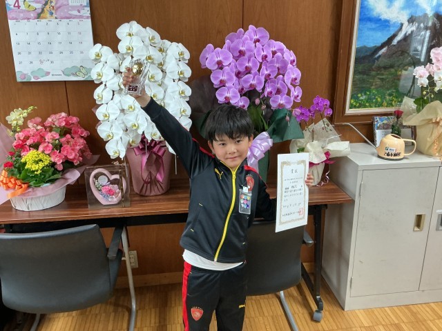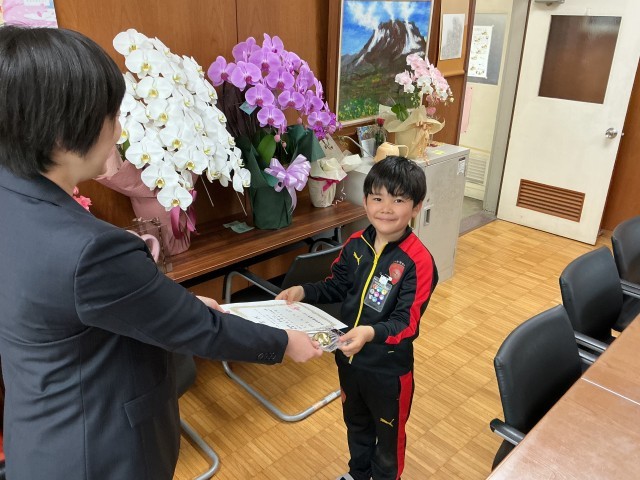 東浦町スポーツ祭サッカー大会で、見事優勝した児童の表彰を行いました。