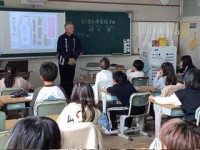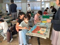 特別支援学級で、書道の先生をお招きしました。色紙にお気に入りの文字を書いたり、太...