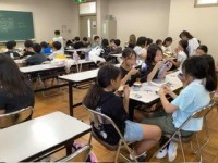 野外料理の後は、少し、エアコンの部屋で休憩です。部屋のグループでカードゲームを楽...