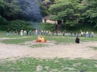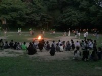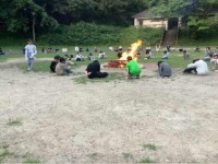 キャンプファイヤーです。火の神が登場して、協力の火、友情の火、元気の火をさずけら...