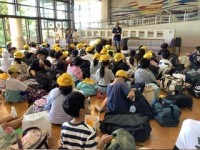 予定通り、美浜自然の家に到着入所式でお話を聞きました。よく話が聞けました、と褒め...