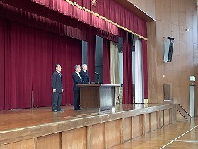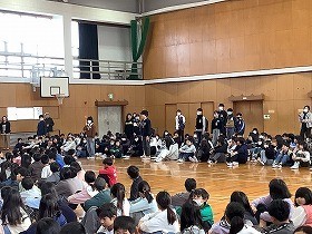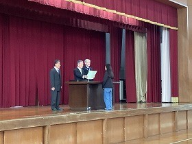 毎年この時期に、亀崎明亀会(明るい亀崎を作る会)の代表の方にお越しいただき、6年生の表彰をしていただいております。