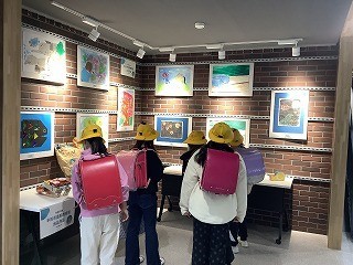 登校してきた児童も足を止めて芸術鑑賞をしています。