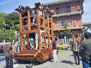 先週の日曜日のごま掘りに続き、昨日は各組が山車の組み上げでした。
