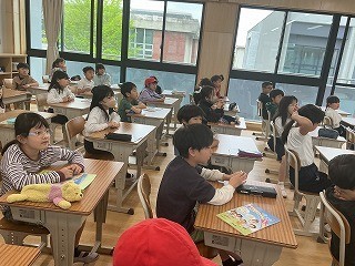 ◇3年生 外国語活動 初めての授業です。まずは外国語に慣れ親しむことが目標です。元気よく挨拶などができました。