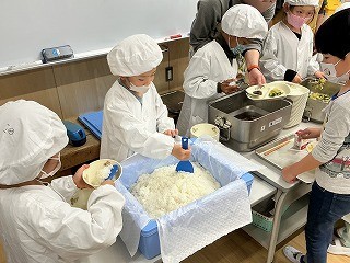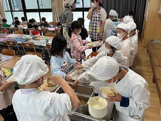 担任の先生の健康チェックと身だしなみチェックを済ませたらいよいよ配膳です。