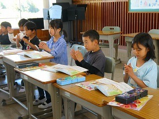 4/16 授業の様子(2年) 公開日 2026/04/16 更新日 2026/04/16 有脇小のようす 音楽科の授業で、「朝のリズム」という曲を学習しました。曲に合わせて、手をたたく、足踏み、膝をたたくなどして、リズム打ちをしました。とても楽しそうでした。 +6