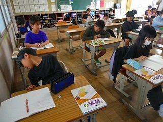 4/27 授業の様子(5年) 公開日 2026/04/27 更新日 2026/04/27 有脇小のようす 算数科の授業で、「大きな体積」を学習しました。1立方メートルは何立方センチメートルかを考えました。 +2