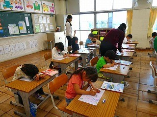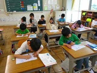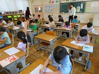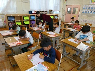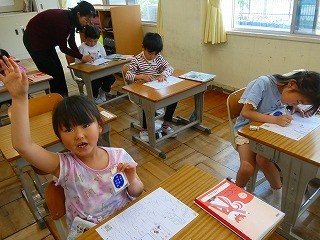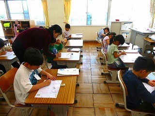 4/28 授業の様子(1年) 公開日 2026/04/28 更新日 2026/04/28 有脇小のようす 国語科の授業で、ひらがなの「り」を学習しました。丁寧に書き、先生に丸をつけてもらいました。上手にかけるまで何度も書き直していました。えらい! +4