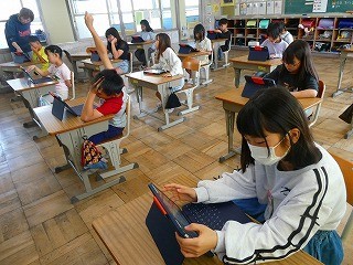 総合的な学習の時間では、福祉の学習をしています。今日は、タブレット端末を活用して、自分が調べてたい「パラスポーツ」を選び、どんなスポーツなのかをまとめました。写真も入れて、とても分かりやすくレイアウトしていました。