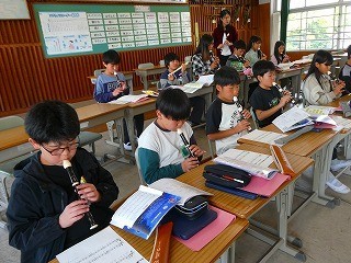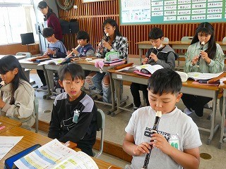 4/28 授業の様子(6年) 公開日 2026/04/28 更新日 2026/04/28 有脇小のようす 国語科の授業では、「帰り道」を学習しました。登場人物の人物像を考え、作品の構成の効果を考えました。グループで話し合い、さまざまな意見が出ました。 音楽科では、「マルセリーノの歌」をリコーダーで練習しました。♯ソの音に注意して、何度も練習しました。 +7