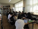 図書委員は本の貸し出しと返却の仕事をします。たくさん本を借りに来ていました。