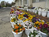 緑化委員は、パンジーの水やりを朝しています。きれいな花の間を通って子どもたちは登校します。