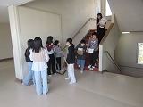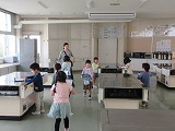 学校の中を探検しました。保健室や職員室など、いろいろな部屋があることを知りました。