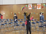 教室で、保護者が担任から説明を受けている間、大型紙芝居を見て過ごしました。