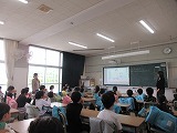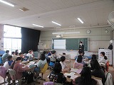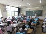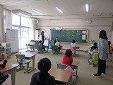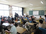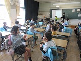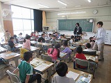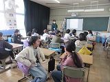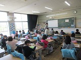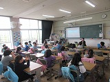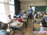 外国語活動では、新しいALTの先生が来ました。質問タイムでは、子どもたちからたくさん質問が出ました。