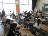 毎週水曜日の8:30~8:40はなるっこタイムです。なるっこタイムでは、コミュニケーション力の育成をめざして、全クラスでアドジャンに取り組んでいます。ペアでお題にある質問に順番に答えます。最後まで静かに聞くことがポイントです。お互いのことがよく分かること、話を聞き合う土台ができること、自分の思いを相手にわかるように伝えることなど、力が伸びていきます。