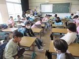 身体測定では、静かに待つ5年生でした。高学年として立派な姿です。