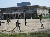 運動場では、サッカーやドッジボールで遊ぶ児童がたくさんいました。
