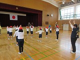 体育館が身体測定で使えなかったので、多目的室で体ほぐしの運動をしました。