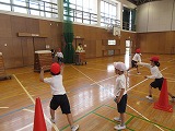 ラジオ体操をキビキビとした動作でした。その後、かけっこやボール投げをしました。