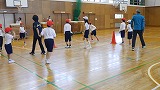 多目的室でボール送りをしました。かけ声や渡し方、相手を思う動きができていました。