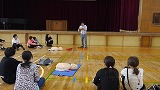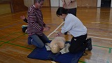 今月始まる水泳の授業を前に、教職員は救急法訓練を行いました。消防署から講師をお招きして、胸骨圧迫やAEDの使い方の確認をしました。様々なシチュエーションや役割分担についても考えながら、訓練をしました。