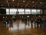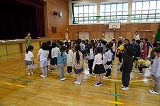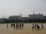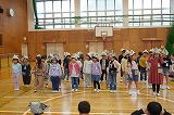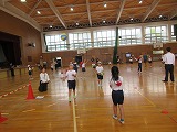 体育館でドッジボールの終わりのあいさつをしていました。元気のよい「ありがとうございました」でした。
