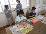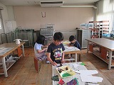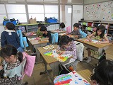 図工では作品作りでアイデアが膨らんでいます。思い思いの作品ができあがってきていました。