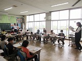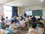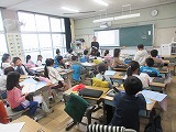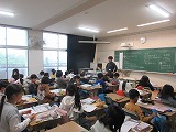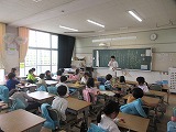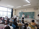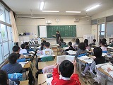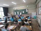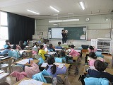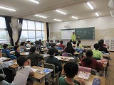 そうじについて学ぶ、出前講座がありました。そうじをする意味や、ほうきの正しい使い方やぞうきんでの机の拭き方について学ぶことができました。
