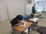 テストに取り組みました。みんなで問題用紙を確認しながら一問ずつ進めました。解答用紙の名前の欄に小さい字で書くことができました。