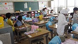小学校の給食が始まって3週間余りがたちます。1年生も一人一人が協力して準備がしっかりできていました。