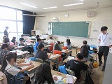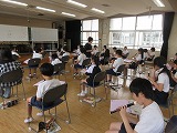 生活指導担当の千葉先生より、身だしなみについてと登下校の話がありました。最近、下校時のトラブルがありました。下校するときは、1人で帰らずに複数で帰ることや、トラブルに巻きこまれそうになったら自分で何とかしようとせずに、親や警察に相談したりすることなどが、自分の身を守ることにつながるといった話がありました。