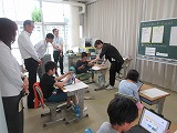 算数では、ティームティーチングで、ノートに丸を付けていきます。教師間の連携です。