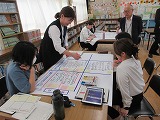 生活科では、まち探検に向けて、校区の地図をもとに知っていることを発表しました。身近な施設をよく知っていました。