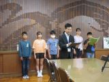 自転車訓練をしました。校内コースで発進・停止の練習をしました。発信前の確認など、自転車の運転に大切なことを交通指導員さんとPTA校外指導部の方から教えていただきました。暑い中、ありがとうございました。