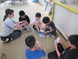 音楽では、手遊びをペアでやりました。盛り上がった様子で笑顔が見られました。