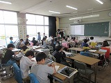 地震避難訓練を行いました。各学級では事前に、予想される東南海地震に備えての避難の仕方をあらためて考えていました。教室にいるとき、体育館にいるとき、図書室にいるとき、廊下にいるときなどをイメージさせながら、命を守るための行動について考えました。避難訓練は子どもたちにとってはもちろん、教職員にとっても訓練です。