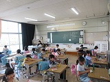 国語では、一文一文読む箇所を確認し、一斉に音読をしました。言葉の響きを味わっていました。