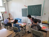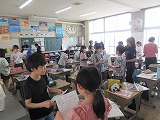 外国語では、誕生月を質問し合いました。ワークをしているうちに英語が身に付いていきます。