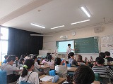 算数では、問題をスクリーンに投影してみんなで考えました。