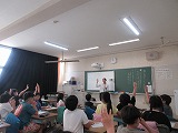 本日5時間目に学校保健委員会を行いました。テーマは「こころを大切にしよう~幸せな未来のために~」です。司会や進行、5,6年生から回答を集めたストレスチェックの結果の発表を保健委員会が務めました。講師には半田市健康課より保健師さんをお招きして、心を元気にする方法を学びました。緊張を感じると本来の力を発揮しづらいことがあるので、力をゆるめる方法を体験的に教えてもらいました。