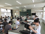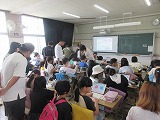 理科は顕微鏡を使って実験をしました。安全に準備をしていました。
