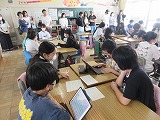 図工では、作品が完成し、タブレットで撮影しました。作品カードを作成しました。