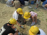 足を砂場に埋めたり、深い穴を掘ったりと楽しそうに活動していました。