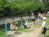 朝から、とても暑いでした。暑さ対策で日傘を使う子もいます。こまめな水分補給をし、熱中症の予防に努めよう。