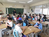 ばくだんゲームを通して、よりより気持ちの表し方を学習しました。ゲームが始まるととても和やかな雰囲気で楽しそうにばくだんを回していました。応援する姿や静かに待つ姿など、とても素晴らしかったです。特別支援学級の授業を校内の職員が参観することで、特別支援学級のノウハウを学ぶことができました。