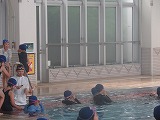 はじめての小学校でのプールです。先生の話をしっかり聞いて、約束を守って取り組みました。水中を進んで、インストラクターさんにタッチしたり、顔を付けたりと水遊びを楽しみました。