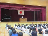 1学期最後の朝会です。校長先生から、教科書は税金によって将来の日本を担うみんなに無償で配られていて大事に使ってほしいとの話がありました。
